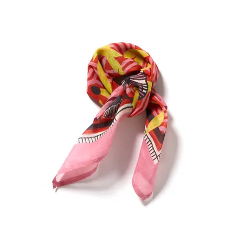 Veldig tynt bomullsstoff, er det håndvask som gjelder. Skjerfet er digitaltrykt. Farge: Rosa / Rød.